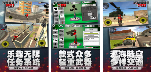 想體驗簡易畫風(fēng)的游戲作品,那么可以來試試這款火柴蜘蛛俠英雄二游戲中不僅沿襲了第一部的炫酷玩法,并且在第二部當(dāng)中加入了大量具有風(fēng)格特色的動作格斗玩法。玩家可以利用特殊武器來完成更高能的升級任務(wù),系統(tǒng)更為豐富多樣,各種輕型或重型武器可以讓玩家自由選擇。除了可以使用珠四穿梭于天際之中,還可以利用各種海陸空多樣性交通設(shè)備,讓追捕過程更加刺激。