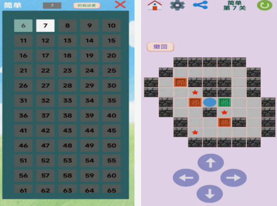 屬于有著三種不同難度等級,可以滿足各種水平玩家需求,以熟悉的推箱子玩法為主,里面的主角就是沒有頭發(fā)的圖圖,在進行闖關時,選擇了不同的難度挑戰(zhàn)以后,就可以進入對應的關卡當中,推箱子時要掌握游戲的規(guī)則,點擊4個方向的鍵盤,利用不斷推動箱子能到達規(guī)定的位置以后,就能完成任務闖關成功。