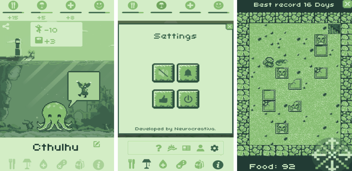 克蘇魯虛擬寵物是具備像素背景的模擬養(yǎng)成寵物的手游,特殊的像素世界觀養(yǎng)成設定帶來更多驚喜,克蘇魯小怪物的養(yǎng)成速度也超級快,你可以隨意給小怪物喂食并與其培養(yǎng)感情,后續(xù)可以操控小寵物在克蘇魯世界中隨意歷險,游戲畫面像素樸實有著靈動的操作手感,歡迎克蘇魯游戲愛好者進入本作培養(yǎng)寵物。