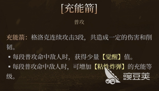 格洛克可以帶來一個(gè)充能箭的攻擊,作為她的普攻在前期攻擊是可以連續(xù)3段輸出效果,一共造成的傷害總和也帶有一定的削刃,這里每次普攻在擊中敵人的時(shí)候都可以帶來覺醒值的積累,而且大家使用普攻這3段的時(shí)候,只要命中敵人就可以增加后期粘性炸彈的充能等級(jí),這個(gè)粘性炸彈充能等級(jí)越高的情況下,后期使用這類炸彈來的輸出數(shù)值就是越高的,所以格洛克在遠(yuǎn)程輸出上面是有一定地位的。