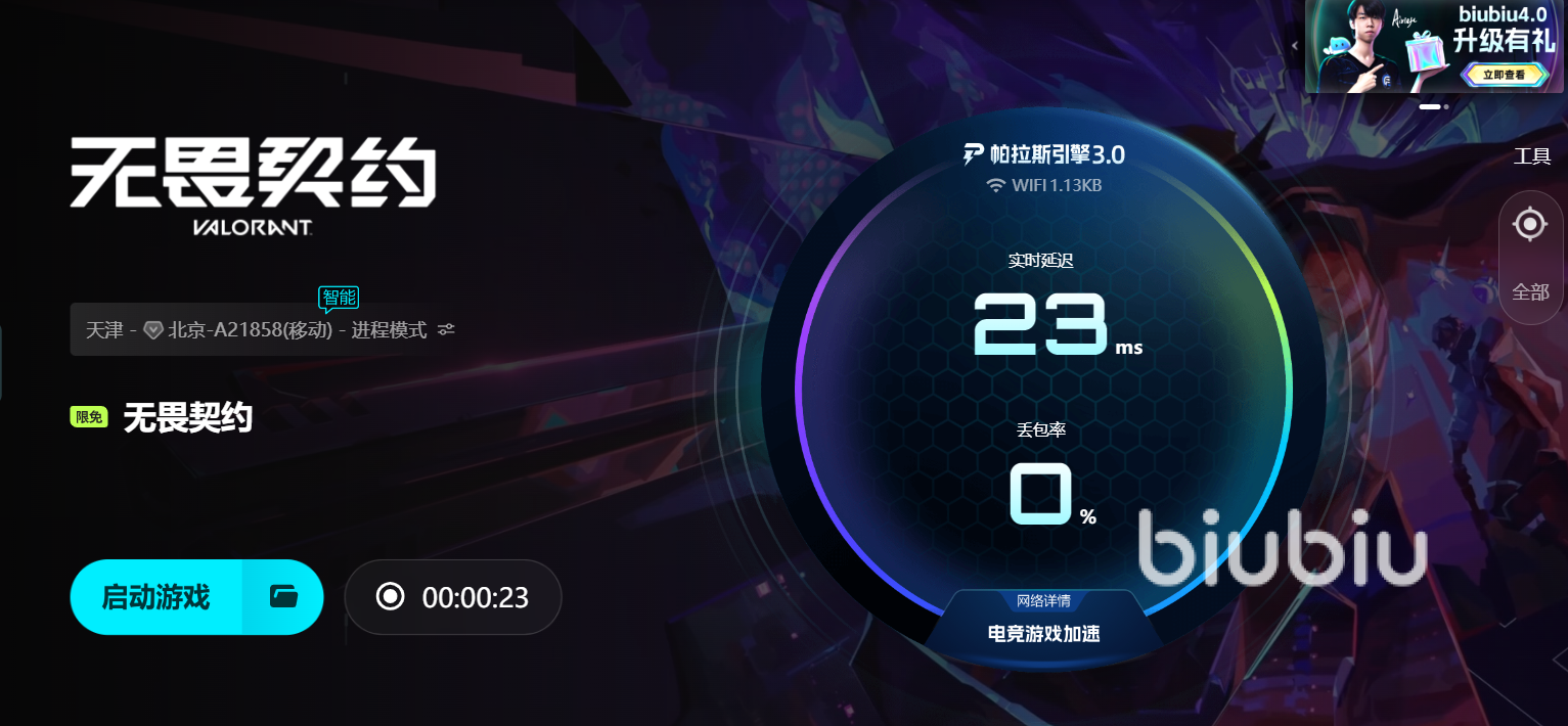 biubiu加速器正是應(yīng)對這類高頻數(shù)據(jù)交互類游戲網(wǎng)絡(luò)問題的利器。其引入的帕拉斯引擎3.0,是一項(xiàng)結(jié)合智能調(diào)度與動(dòng)態(tài)路徑優(yōu)化的核心技術(shù)。該引擎能夠根據(jù)用戶當(dāng)前網(wǎng)絡(luò)情況、所在區(qū)域、游戲服務(wù)器位置,實(shí)時(shí)制定最優(yōu)連接路徑,最大限度減少傳輸鏈路中丟包、延遲波動(dòng)的可能。同時(shí),biubiu聯(lián)合冠軍選手Aixleft,對加速策略進(jìn)行了系統(tǒng)性實(shí)戰(zhàn)調(diào)校,在應(yīng)對《無畏契約》這種對“命中判定”極其敏感的射擊類游戲時(shí),biubiu可以提供更穩(wěn)定的數(shù)據(jù)回傳效率,確保每一次開槍、每一個(gè)移動(dòng)操作都精準(zhǔn)觸達(dá)服務(wù)器,避免因網(wǎng)絡(luò)抖動(dòng)造成錯(cuò)失先機(jī)。