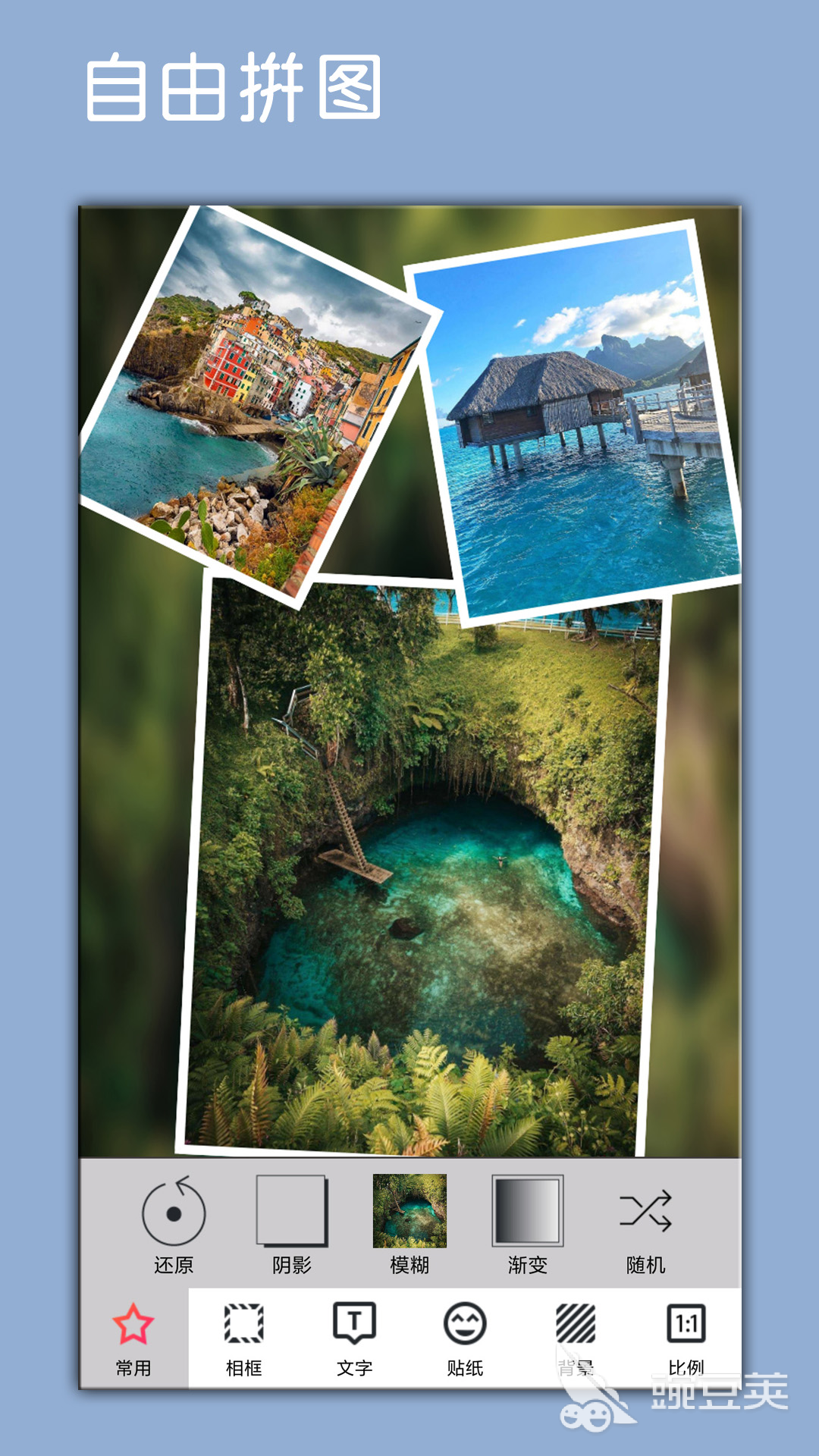 這款軟件連模板都透著可愛(ài),拼圖樣式都帶卡通設(shè)計(jì),蝴蝶結(jié)、小熊、星星等元素隨處可見(jiàn),搭配愛(ài)心氣泡裝飾,氛圍甜美又溫馨。再加上可愛(ài)文字框,少女心直接拉滿。
