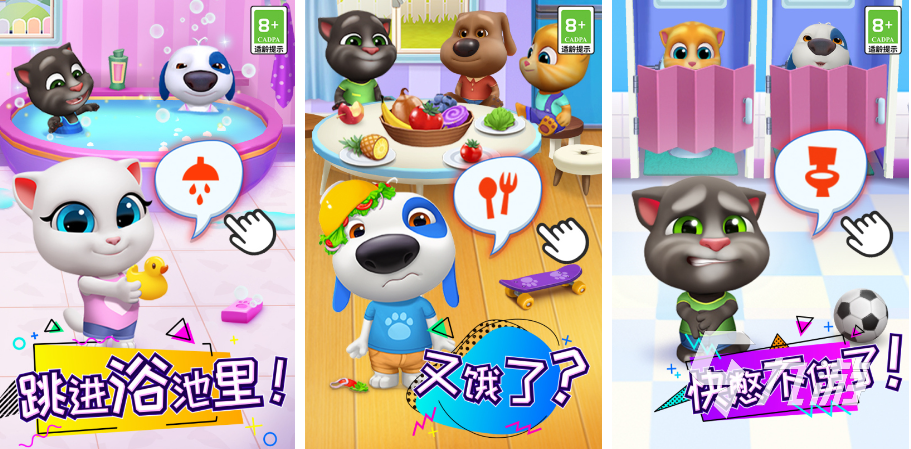 《湯姆貓總動員》這款游戲里面融合了湯姆貓系列里面的六位家族角色,所以它的內(nèi)容和玩法更加的豐富,里面還有各種趣味的小游戲,你可以和這些湯姆貓展開一系列的互動,你能和它們一起發(fā)揮想象力創(chuàng)作美術(shù)作品,幫助它們?nèi)ャ逶∠丛?,給它們做美味的糕點美食,安排它們?nèi)奖悖约罢疹櫵鼈兯X。在一系列的互動里面,你能不斷拉近和它們之間的距離,它們也會調(diào)皮的模仿你說話,帶給你歡聲笑語。
