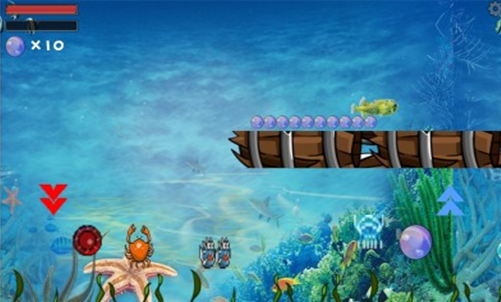 《勇敢的蟹兄弟》是一款以海洋為背景的冒險題材小游戲,在遼闊無邊的海底,你將化身為一只螃蟹為了找尋寶藏在海洋各處遨游探險。期間你將遇見各種魚類和海洋生物,但是海底危險眾多,除了會纏住身體的海草還有各種海上獵食者會襲擊你,想要不被捕食就需要靈活走位,快來下載游戲體驗螃蟹的海洋冒險之旅吧。