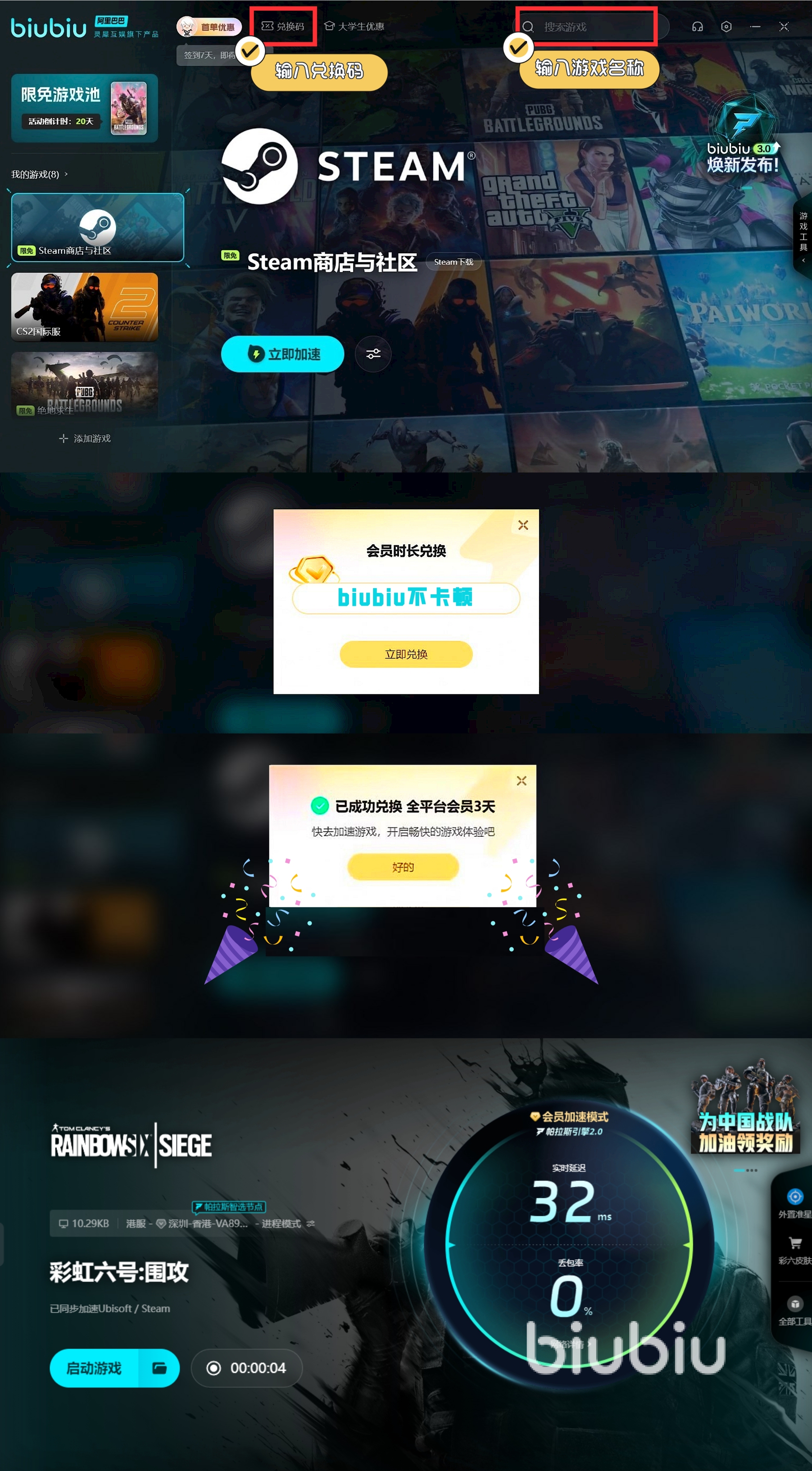 在玩的時候大家可以試試用用提速應(yīng)用,會流暢不少,而且在用這個角色操作無人攻擊機的時候,大家也能流暢的確定自己想要攻擊的地點,后續(xù)用狙的時候也可以流暢的瞄準(zhǔn)敵人,不怕因為各種卡的原因而造成設(shè)計失敗。新用戶在登錄上面給大家推薦的這個應(yīng)用的時候可以直接得到3小時的時長,后續(xù)覺得不夠也可以再用【biubiu不卡頓】延長三天時間。
