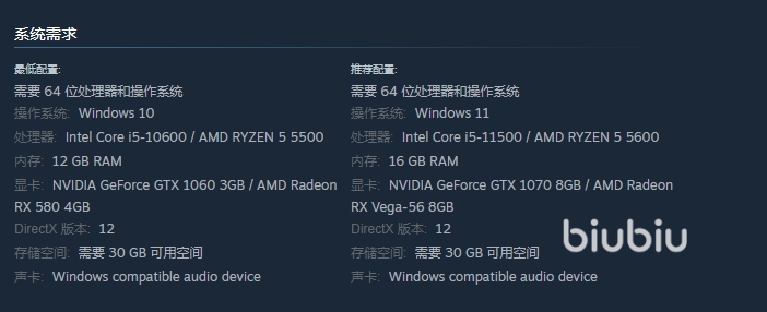在這款游戲里大家可以使用的角色有很多,每個(gè)角色都有獨(dú)特的能力,主要是通過團(tuán)隊(duì)合作的形式去打敗各種對手。玩兒的時(shí)候大家需要保證自己的最低配置達(dá)到64位處理器,操作系統(tǒng)要在Windows10及以上,內(nèi)存12gb的就可以了,顯卡達(dá)到1060,儲(chǔ)存空間需要30gb,詳細(xì)的內(nèi)容從圖中大家也可以了解到,只要內(nèi)存空間充足,系統(tǒng)達(dá)到要求,大家就能下載去體驗(yàn),搭配加速器,大家可以玩的很流暢。