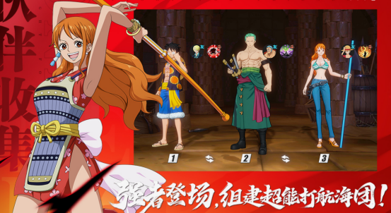 該游戲公司所打造的,這款根據(jù)日漫航海王所打造的手游,無(wú)論是本身這部動(dòng)漫所取得的成就,還是這一款游戲的很多設(shè)定,都能加入到緊張刺激的戰(zhàn)斗當(dāng)中。高度還原每一個(gè)伙伴的外形特點(diǎn),以及技能設(shè)定。面對(duì)各種對(duì)手的時(shí)候,需要玩家憑借著簡(jiǎn)單的操作方法主動(dòng)出擊,配合連招以及走位,可以在競(jìng)技場(chǎng)當(dāng)中與對(duì)手較量,展開(kāi)巔峰對(duì)決。