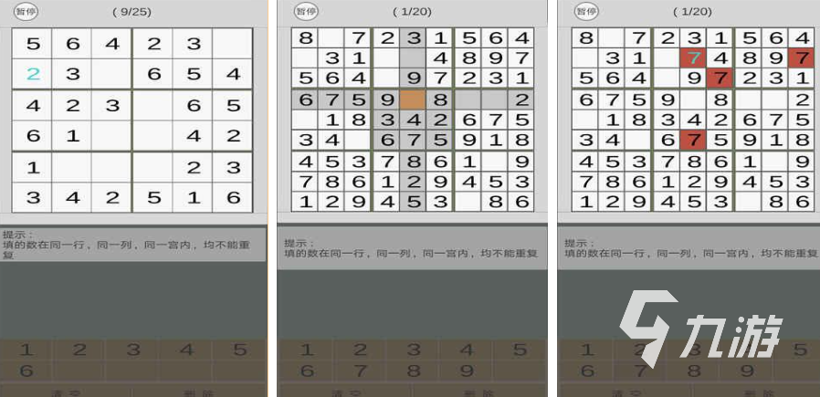 《數(shù)獨九宮》是以數(shù)獨為主題,給大家提供了不同的九宮格。這里的數(shù)獨分布各不相同,難度也會增加。在正方形的九宮格中,會排列著1~9的數(shù)字。主要任務(wù)需要將橫豎所有數(shù)字進行分配,并將1~9的數(shù)字分配在每一個數(shù)格中,這樣才能夠完成任務(wù)。比較考驗玩家的邏輯思維能力,能夠有更好的邏輯思維將數(shù)字進行排列。并且會有著不同排列方式,比較千變?nèi)f化,是屬于非常不錯的數(shù)字類游戲。會給大家提供不同規(guī)格的游戲模式,難度在升級增加之后,你要仔細的觀察,分配每一個不同的數(shù)字進行放置。
