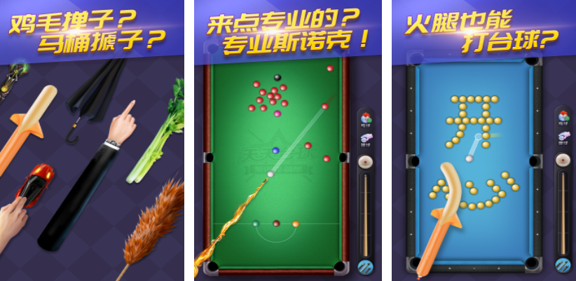 在天天臺球這個(gè)游戲里,打破傳統(tǒng)的設(shè)定,會設(shè)定充滿趣味性的花式擊球挑戰(zhàn),在打球的過程中,除了可以選擇球桿,還可以選擇各種物品,球桿不同能帶給玩家的擊球樂趣也不一樣,不管是喜歡專業(yè)斯諾克對戰(zhàn),還是喜歡趣味擊球的玩家,都不要錯(cuò)過這個(gè)游戲,是最能緩解壓力的一個(gè)趣味臺球游戲。