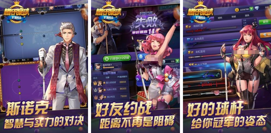 騰訊桌球是一個(gè)可以模擬現(xiàn)實(shí)桌球?qū)沟挠螒颍煌氖钦麄€(gè)游戲的呈現(xiàn)更偏向卡通畫風(fēng),玩家將會扮演成大量的卡通角色,在游戲里開啟臺球?qū)?,每次對?zhàn)除了玩家個(gè)人的能力之外,球桿也會有相應(yīng)的加成作用,可以不斷在游戲里進(jìn)行挑戰(zhàn),讓自己積累足夠多的資源,接著就可以用這些資源兌換球桿,可以擁有更強(qiáng)的對戰(zhàn)能力。