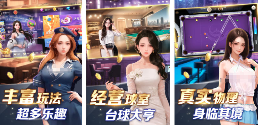 開心臺球這個(gè)游戲里,每個(gè)成員都能置身在真實(shí)的臺球世界,體驗(yàn)身臨其境的體驗(yàn)臺球?qū)梗锩嬗袉稳四J?,玩家可以?dú)自通過練習(xí)提升臺球的能力,也可以選擇多人對戰(zhàn),可能和更多成員展開臺球?qū)?,感覺臺球挑戰(zhàn)不過癮的玩家還能經(jīng)營這家臺球室,能通過不斷制定活動(dòng),讓自己成為臺球大亨。