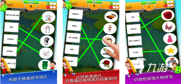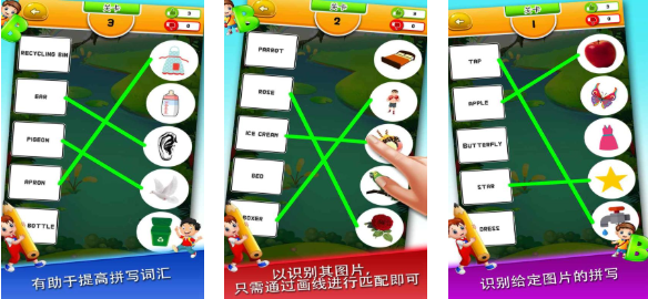 這是款可幫助孩子增加自身單詞知識(shí)儲(chǔ)備的英語(yǔ)游戲,連連看的游戲性質(zhì)跟極快節(jié)奏都是本作特色,只需將英文單詞跟合適的圖片相互連接就可以通關(guān)了,獨(dú)創(chuàng)且快速的游戲節(jié)奏會(huì)讓小朋友拼寫(xiě)詞匯的能力提升,卡通風(fēng)格的背景營(yíng)造對(duì)低齡寶寶來(lái)說(shuō)吸引了更強(qiáng),各種英文類(lèi)型的學(xué)習(xí)主題連線(xiàn)玩法啟發(fā)智商。