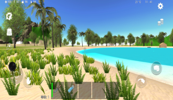 海島生存模擬手游里,玩家一開始只有一把石斧和一把石鎬,得在海島里找資源,用石斧砍樹能拿到木材,用石鎬挖礦能拿到石頭,樹上結(jié)的水果能摘下來吃恢復(fù)饑餓值,海島里有很多野生動物,比如野豬會主動攻擊人,得用石頭或者后來做的弓箭打它,打死野豬能拿到肉,肉要放在火堆上烤一下才能吃。