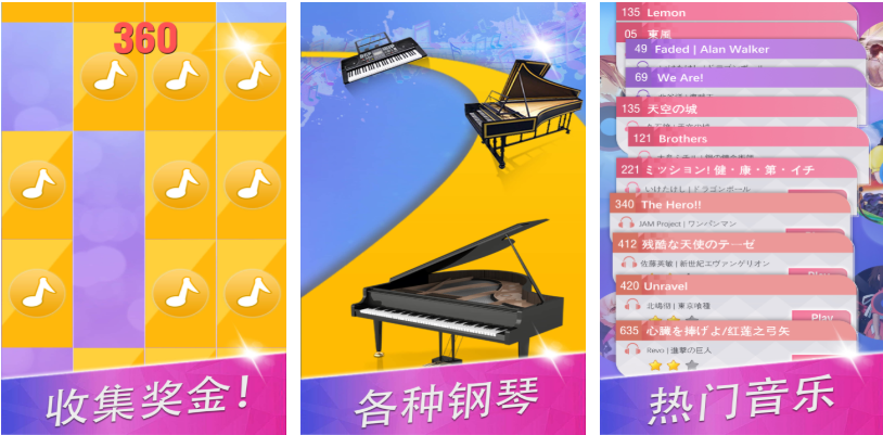 鋼琴塊3這款音樂游戲呈現(xiàn)出的音游互動體驗十分精彩,鋼琴配樂音效完美還呈現(xiàn)出更多的游戲內(nèi)容,關(guān)卡設(shè)定多樣能讓大家的樂感得到快速鍛煉,主題玩法還是以點觸黑色方塊闖關(guān)為主,黑色方塊的琴鍵加上絢麗的背景帶來視覺沖擊,主題任務(wù)和成就任務(wù)多不勝數(shù)吸引到的鋼琴游戲愛好者也是源源不斷。