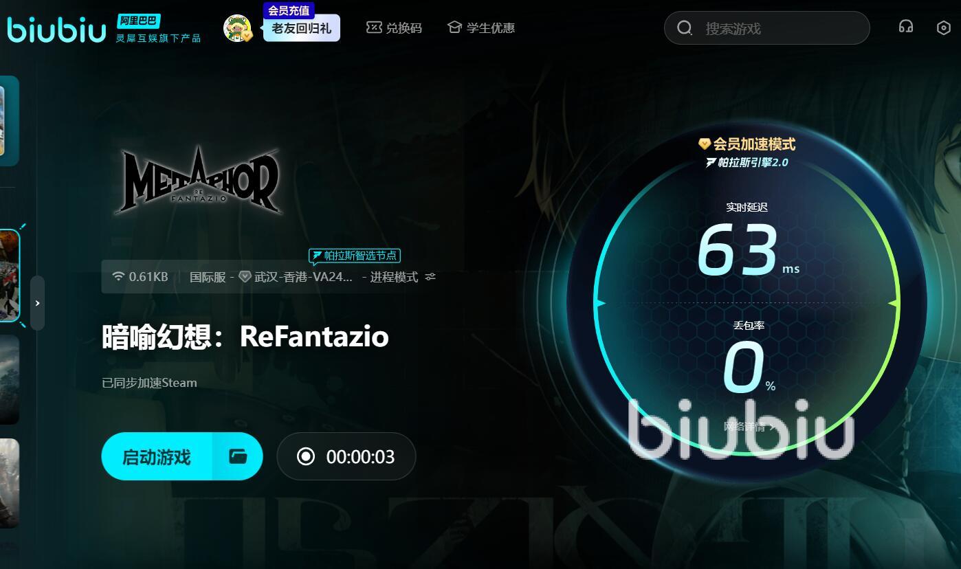 極具特色的混合對抗機制,當(dāng)你碰上不堪一擊的小怪時,你能直接跳過戰(zhàn)斗流程,拾取掉落的獎勵,敵方要是很強大,你就要自己動手去慢慢打了,不過難度越高,挑戰(zhàn)起來更有趣,無論哪一類敵人,擊敗它們的基礎(chǔ)就是穩(wěn)定的游戲,biubiu中的服務(wù)就能使暗喻幻想流暢地運行下去,對于時常被閃退困擾的朋友,biubiu很值得一試,新注冊的用戶即可免費用3小時,想要延長試用時間的話,只需把【biubiu不卡頓】這個碼輸入到對應(yīng)地方,就能繼續(xù)領(lǐng)取72小時的會員,每個人都能用這個碼去領(lǐng)。試用完之后,要是感覺它的效果很符合你的預(yù)期,不妨成為正式會員,以后無論用手機還是電腦去玩,都能用它去加速了。