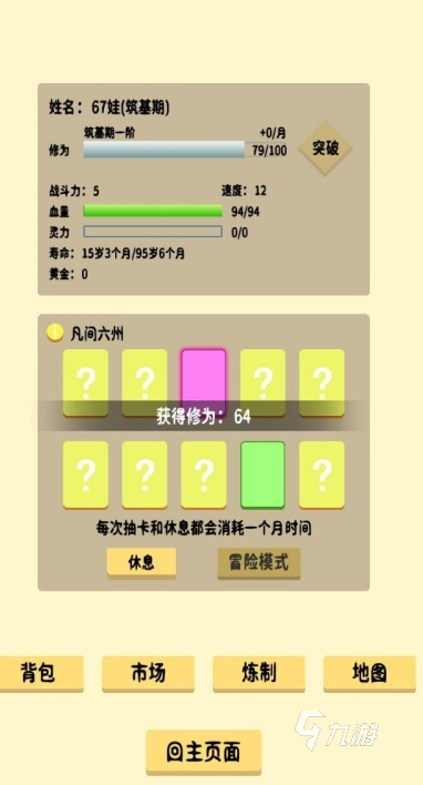 一款修仙題材的抽卡游戲,但是這款游戲的抽卡主要就是抽技能和一些心法了,對于修煉來說是有較大幫助的。在資源獲取上除了一些戰(zhàn)斗之外,市場也是不錯的選擇。