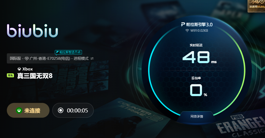 當然也有可能是因為玩家當前的數(shù)據(jù)網絡環(huán)境較差,不能很好的加載資源,所以導致啟動的時候不能夠完整的呈現(xiàn)游戲內容,從而導致閃退,這個時候就需要大家搭配適合的提速應用了,能夠根據(jù)大家當前的網絡狀況搭配適合的輸出線路。