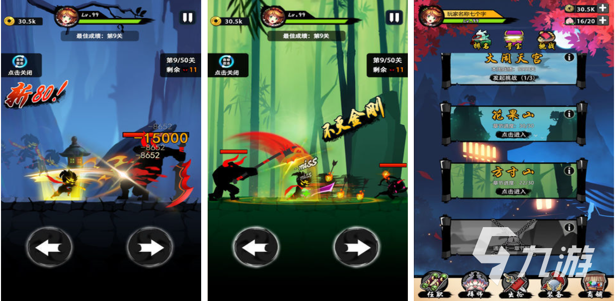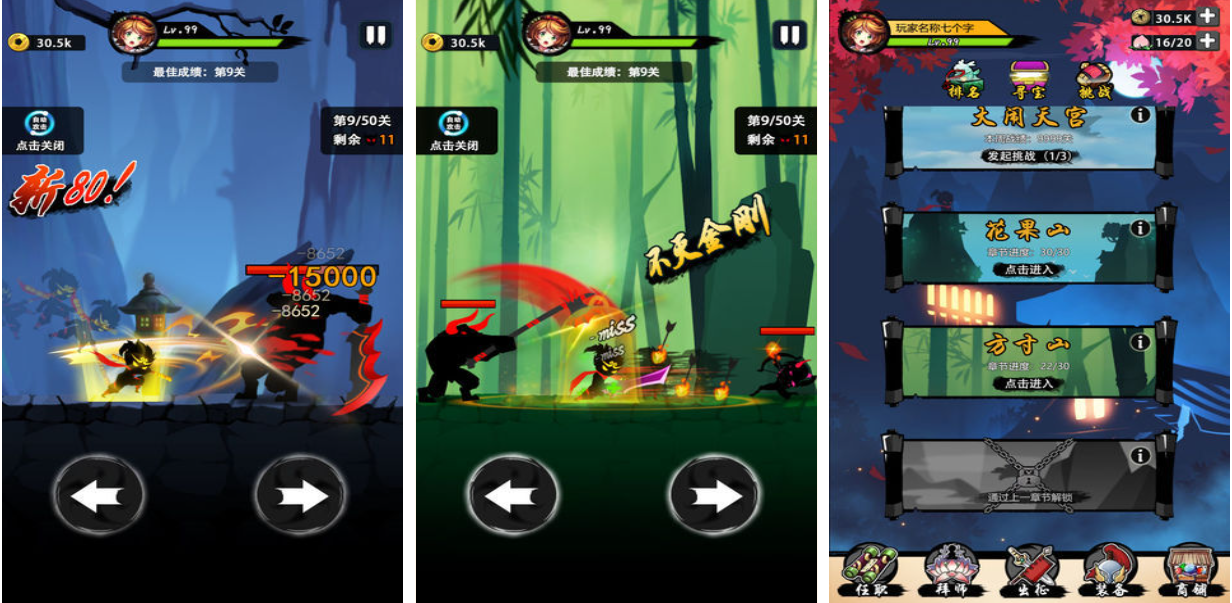 悟空快打是呈現(xiàn)出黑白背景火柴人風(fēng)格的動(dòng)作游戲,本作中的西游記角色都展現(xiàn)出火柴人的造型個(gè)性鮮明,而且操作也是所有西游記游戲中最簡(jiǎn)單的,只需左右控制角色移動(dòng)就可以接近敵人自由戰(zhàn)斗,游戲模式眾多又有著階段式強(qiáng)化設(shè)定,源源不斷的強(qiáng)化冒險(xiǎn)任務(wù)幫助悟空變得更強(qiáng),滿屏張弛有度的黑白背景無疑令觀賞性大幅增加,激情四射的打擊效果也是悟空手游粉絲需求的。