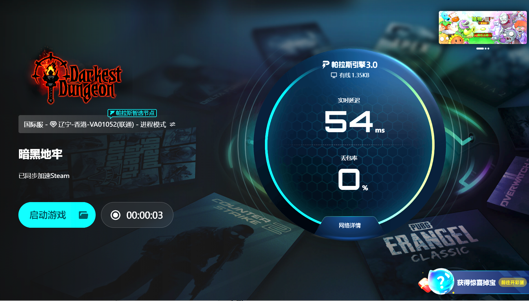 很多人會下意識覺得卡頓是畫質(zhì)高、貼圖重造成的,于是去降分辨率、關(guān)特效、重裝游戲,結(jié)果《暗黑地牢》還是會在探索或結(jié)算時(shí)卡一下。這是因?yàn)檫@款游戲的核心并不是畫面負(fù)載,而是“狀態(tài)要對得上”。地牢進(jìn)度、火把亮度、隊(duì)伍壓力、戰(zhàn)斗結(jié)算、戰(zhàn)利品掉落這些信息都會跟當(dāng)前的探索節(jié)奏一起同步到服務(wù)器,網(wǎng)絡(luò)如果在這一秒抖了一下,客戶端就只能等,表現(xiàn)出來就像畫面不走、指令不往下走。真正要解決的不是顯卡,而是讓這條同步通路變得又短又穩(wěn),讓數(shù)據(jù)一條直線發(fā)過去,不繞路、不丟包,回來的結(jié)算也就能及時(shí)落下,回合推進(jìn)、光照變化、戰(zhàn)利品結(jié)算都會跟著順起來