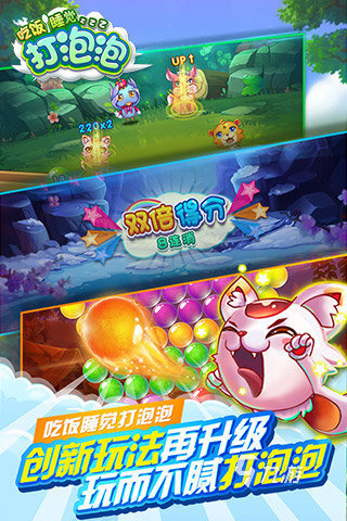 大量的關(guān)卡可以讓玩家們進(jìn)行體驗(yàn),主打的就是一個消除休閑類型的玩法,玩家們在這里可以點(diǎn)擊屏幕上的位置,直接就可以發(fā)射出你們的泡泡,《吃飯睡覺打泡泡》這款手游內(nèi)的寵物養(yǎng)成的玩法是很到位的,你們將會見到各種各樣的技能,在闖關(guān)的過程中給你們帶來很輕松的體驗(yàn),簡直就沒什么難度了。