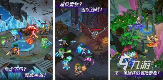 由像素危城的原班人馬進行創(chuàng)作,再別開生樣的游戲世界里展開奇特的冒險旅程,您可以選擇自己喜歡的人物角色,也可在眾多優(yōu)秀的英雄中,組隊去迎接各種超級魔物,在神秘的森林或者是荒無人煙的冰天雪地當中,可能都會隨機呈現(xiàn)出大魔物,而在每一種魔物頭上都會有紅色的血條,您要及時觀察對方的血條值,如果紅色歸零,那么就證明自己已經(jīng)成功將其打敗。