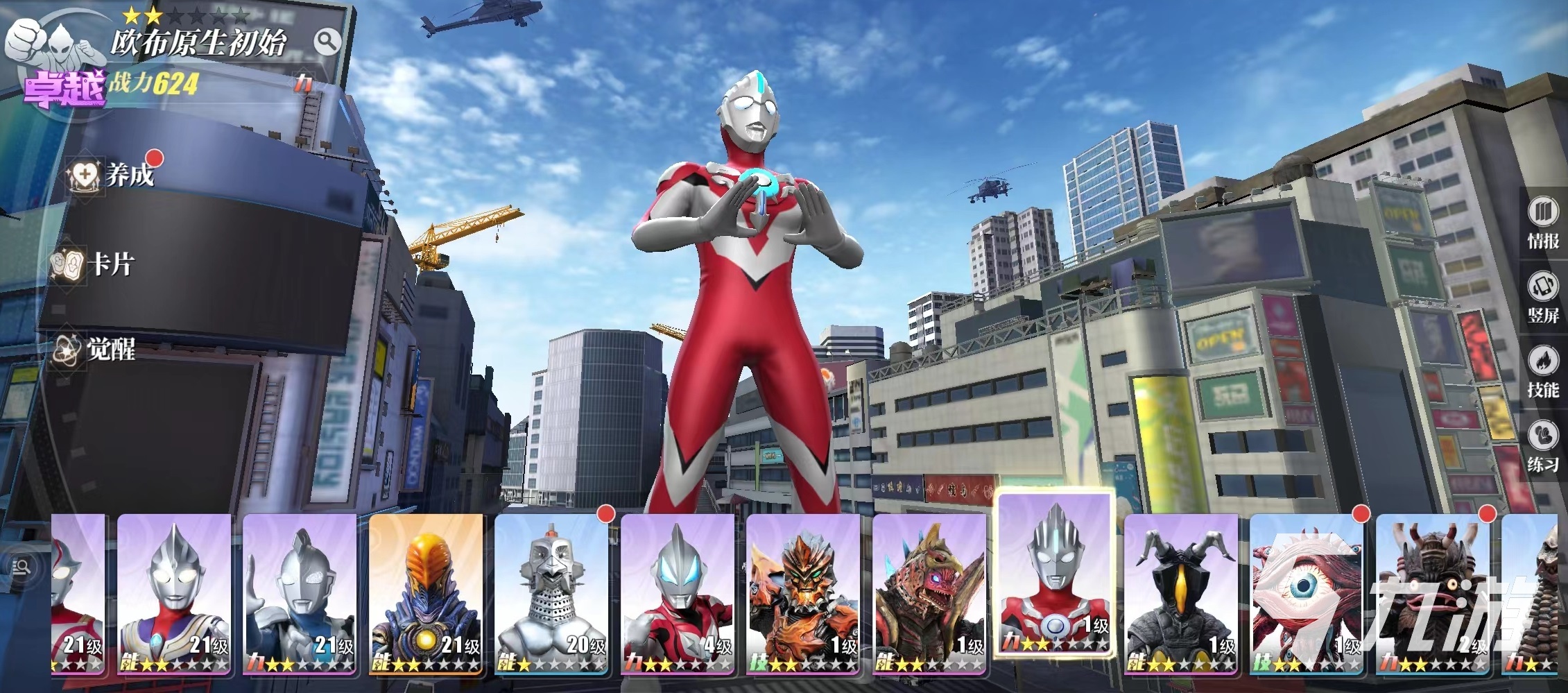 進入游戲后,首先可以通過贈送的各種獎勵來進行抽卡,目前抽卡幾率并不算高,如果要獲得橙色角色,大多數(shù)都要依靠保底來得到。但這款游戲中角色品質(zhì)并不能決定勝負,大多數(shù)紫色奧特曼只要能熟悉連招和技能系統(tǒng),依然可以有著很好的戰(zhàn)力加成。例如賽羅、夢比優(yōu)斯等,都是很多玩家手中的利器。格斗過程設(shè)計出色,比之前幾部作品都要有代入感,第三人稱的視角設(shè)計以及各種連招大招的加入,讓整個競技非??简灢僮?,大招釋放時的特效也可以引燃玩家熱血格斗激情。