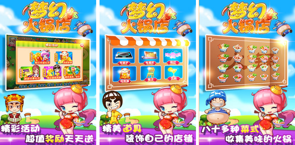 《夢(mèng)幻火鍋店》要說能夠代表中華風(fēng)味的美食肯定少不了火鍋,火鍋男女老少都可以吃鍋底還可以自選食材也可以自選簡(jiǎn)直是萬能的美食,聚餐吃火鍋即享受又熱鬧,開一家火鍋店也是很多火鍋愛好者的的夢(mèng)想,喜歡吃火鍋的人餐餐吃火鍋都可以,在這款游戲中大家就能體驗(yàn)到開火鍋店的樂趣,多種菜市上線還有食材可以搭配快來試試吧!