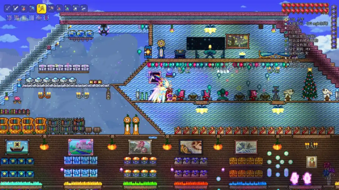 深度的角色養(yǎng)成,玩家通過裝備更好的武器和盔甲、使用藥水等方式來提升角色的能力。游戲中還有豐富的飾品,不同的飾品可以提供各種特殊的屬性加成,玩家可以根據(jù)自己的玩法和需求進(jìn)行搭配。加入了裝備預(yù)設(shè)功能,玩家可保存和切換最多3套裝備。同時(shí)新增“自動(dòng)開火”設(shè)置,可切換所有物品是否自動(dòng)揮舞。虛空袋得到重做,不僅可以隨時(shí)關(guān)閉,避免物品自動(dòng)吸入的尷尬,而且其中的物品可直接用于制作或快速堆疊到附近寶箱,一些信息配飾還可在虛空袋中直接啟用。