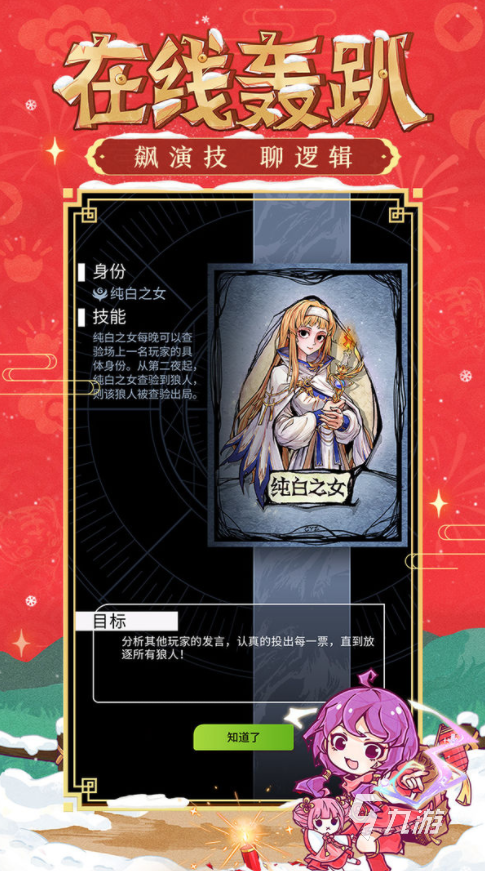 在一座古老的莊園里,一場刺激人心的推理解密游戲正在上演。擁有非常多經(jīng)典的玩法,如天黑請閉眼、剩者為王等,盡情的和其余玩家飆演技,讓游戲不再無聊。
