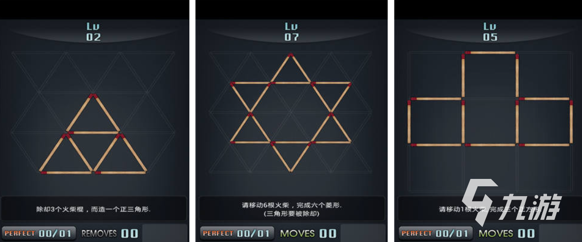 雖然說這款游戲上手是非常簡單的,但是益智燒腦的程度可是一點(diǎn)都不差,游戲內(nèi)共有200余個(gè)關(guān)卡,等待玩家們來挑戰(zhàn),而你需要做的就是根據(jù)系統(tǒng)的提示使用固定的火柴數(shù)量來搭建出系統(tǒng)所要求的圖形。越到后面就越考驗(yàn)玩家們的幾何能力,感興趣的玩家們不妨來挑戰(zhàn)一下哦。