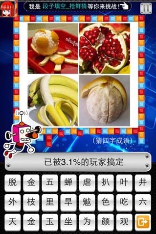 本游戲把圖片含義和成語結(jié)合在一起,讓玩家從中增長成語知識,從最基礎(chǔ)的小學(xué)成語,到包含各種典故的歷史類型,都可以在幾千個小關(guān)卡里逐步學(xué)習(xí)。畫面上方為你設(shè)計了十分到位的意思表達(dá)圖形,玩家可以在下方的提示漢字里選擇正確的詞語順序。為了讓玩家更了解成語出處,拼音和成語含義都在闖關(guān)后及時出現(xiàn)。