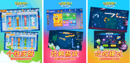 色彩繽紛的游戲畫面,開局之后玩家將會看到一條小小的蛇,通過合理走位的方式將地圖當(dāng)中的彩色小圓點全部吃掉,吃到的小圓點越多,就會變得越長。還支持了一鍵匹配的方式,可以和更多好友一起加入在吞噬尋找小圓點的過程中,也可以將其他比自己小的蛇吃掉,只要利用自己超強的反應(yīng)能力,成為真正的巨無霸就能獲得極高的成就,還可收集不同的卡牌角色組合成獨特的卡組。