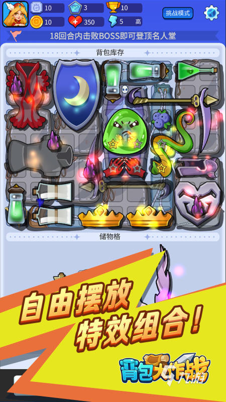 《背包大作戰(zhàn)》一款全篇圍繞著背包合成與地牢闖關(guān)的游戲類(lèi)型,游戲中各種強(qiáng)力的裝備,都需要大家通過(guò)背包合成進(jìn)行產(chǎn)出,是每一個(gè)人品嘗到戰(zhàn)斗圣果的重要利器,為每個(gè)角色都刻畫(huà)了獨(dú)具一格的背包體系,而且涵蓋了各種類(lèi)型百怪千奇的裝備用具,在每個(gè)地圖里,出現(xiàn)的敵人都是實(shí)時(shí)刷新的。