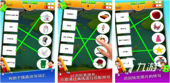 將英語(yǔ)與游戲特點(diǎn)相結(jié)合,創(chuàng)造出獨(dú)特的趣味,玩家們可以在游戲中感受到知識(shí)的樂(lè)趣。而且操作簡(jiǎn)單,只需將認(rèn)識(shí)的單詞與其所匹配的字意向連接,后續(xù)玩家可以自動(dòng)調(diào)節(jié)單詞匹配難度,有一個(gè)記憶力的提高。游戲界面十分整潔干凈,在輕松的音樂(lè)氛圍里,完成對(duì)單詞的讀寫(xiě)和記憶。