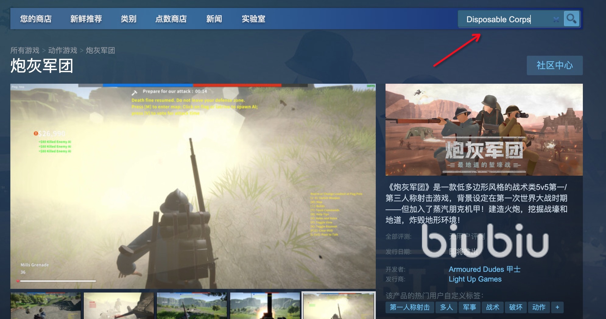 該作品目前已經(jīng)可以在Steam平臺找到,玩家可以在商店搜索“炮灰軍團”或“Disposable Corps”來找到這款游戲。游戲的售價尚未明確,但根據(jù)其豐富的玩法和獨特的風格,預計會是一個非常值得投資的作品。