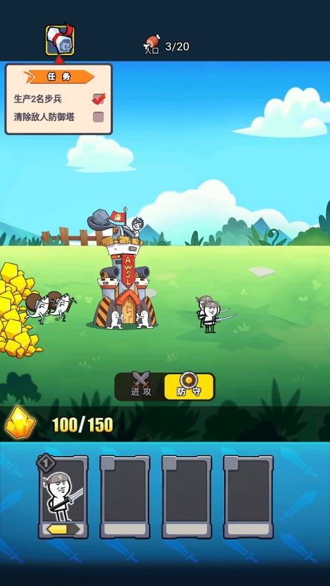 該游戲打造了非常讓人舒適的卡通動畫風(fēng)格,所有的色彩搭配讓人看起來非常舒服,帶給你輕松的視覺享受,能夠在這種輕松的氛圍之中開啟自由的對戰(zhàn)體驗,玩起來非常的盡興。打造的游戲畫質(zhì)也是極為細(xì)膩且極具質(zhì)感的,搭配上詼諧幽默的畫風(fēng),能夠帶給玩家更多的歡樂體驗,沉浸感也變得更加強(qiáng),里面的游戲題材全都以經(jīng)典的表情包為主進(jìn)行制作的,可以開啟非常有意思的模擬戰(zhàn)爭冒險游戲。