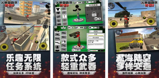 利用3d的畫面進行展現(xiàn),將各種高樓大廈以及特別繁華的城市場景刻畫得非常到位,這里有眾多火柴人的蜘蛛俠英雄角色等待玩家隨意操控。都擁有超強的戰(zhàn)斗技能以及特殊的技巧,可在強大的武器庫中正確挑選還要展現(xiàn)出傳奇的生存戰(zhàn)役,面對各種高難度的任務(wù)挑戰(zhàn)時,您需要做好充分的準(zhǔn)備工作,和其中的火柴人英雄展開瘋狂的冒險。