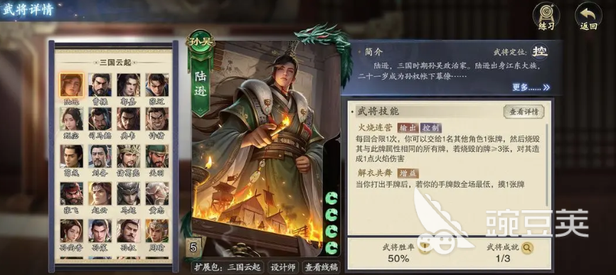 而且周勃的技能容錯率上面非常高,一開始給大家介紹的武將機制也非常清晰的,這個角色非常適合用來了解全模式的各種機制,其次如果沒有周勃的話,大家可以選的是陸遜,陸遜在游戲當中是一個萬能的卡牌,他在楚漢這個模式里面其實也是出場率比較高的,很多角色在前期里面都會用他來找其他模式里面的優(yōu)勢,他上場的話其實綜合性上面是比較好的,因為技能機制上面可以帶來輔助的效果,但是同時也有殺的能力,所以在承擔了部分防御效果之后,他后期跟其他卡牌帶來的團隊能力,也可以通過各種組合帶來不同的情況。