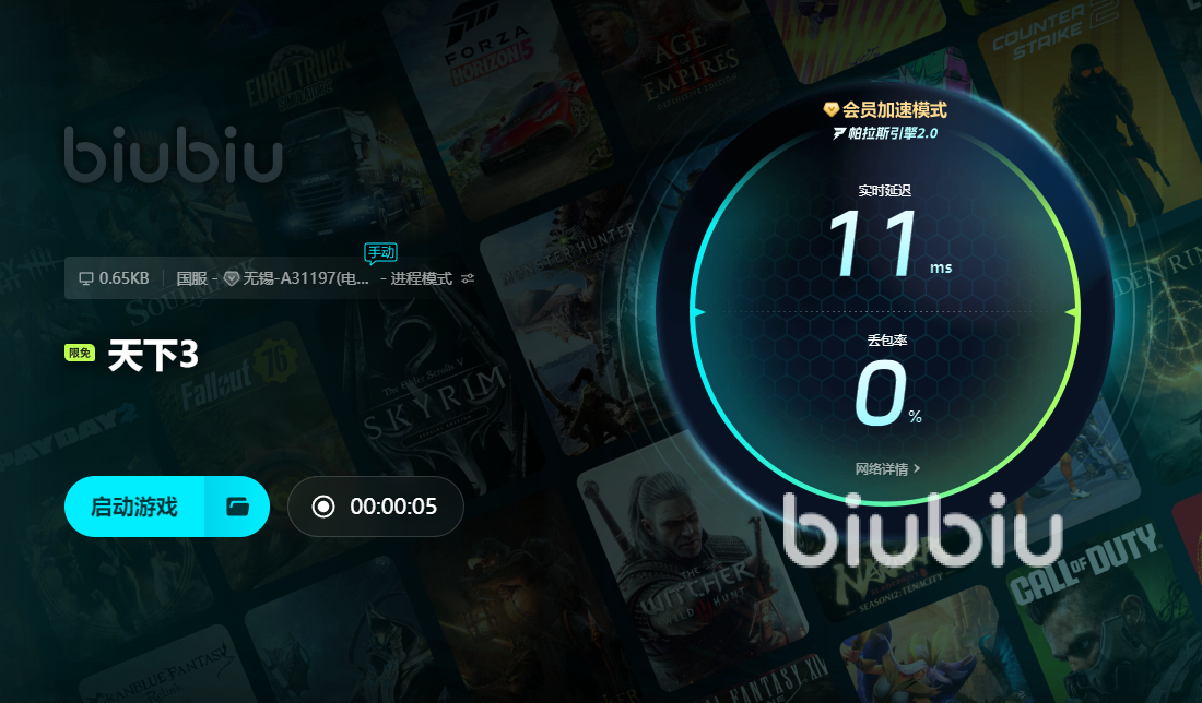 很多小伙伴之前都沒有用過biubiu這款平臺,現在正好有機會可以體驗一番,新用戶注冊登錄的話直接就會有3小時的免費加速時長,在此期間玩天下3這個游戲使用相應的極速服務是不需要花費任何錢的,后面還可以和其他的用戶一樣使用【biubiu不卡頓】在左上角的兌換碼區(qū)域兌換三天的時長,也是同樣不需要花錢就能給游戲加速的,可以享受和會員同等的提速服務。