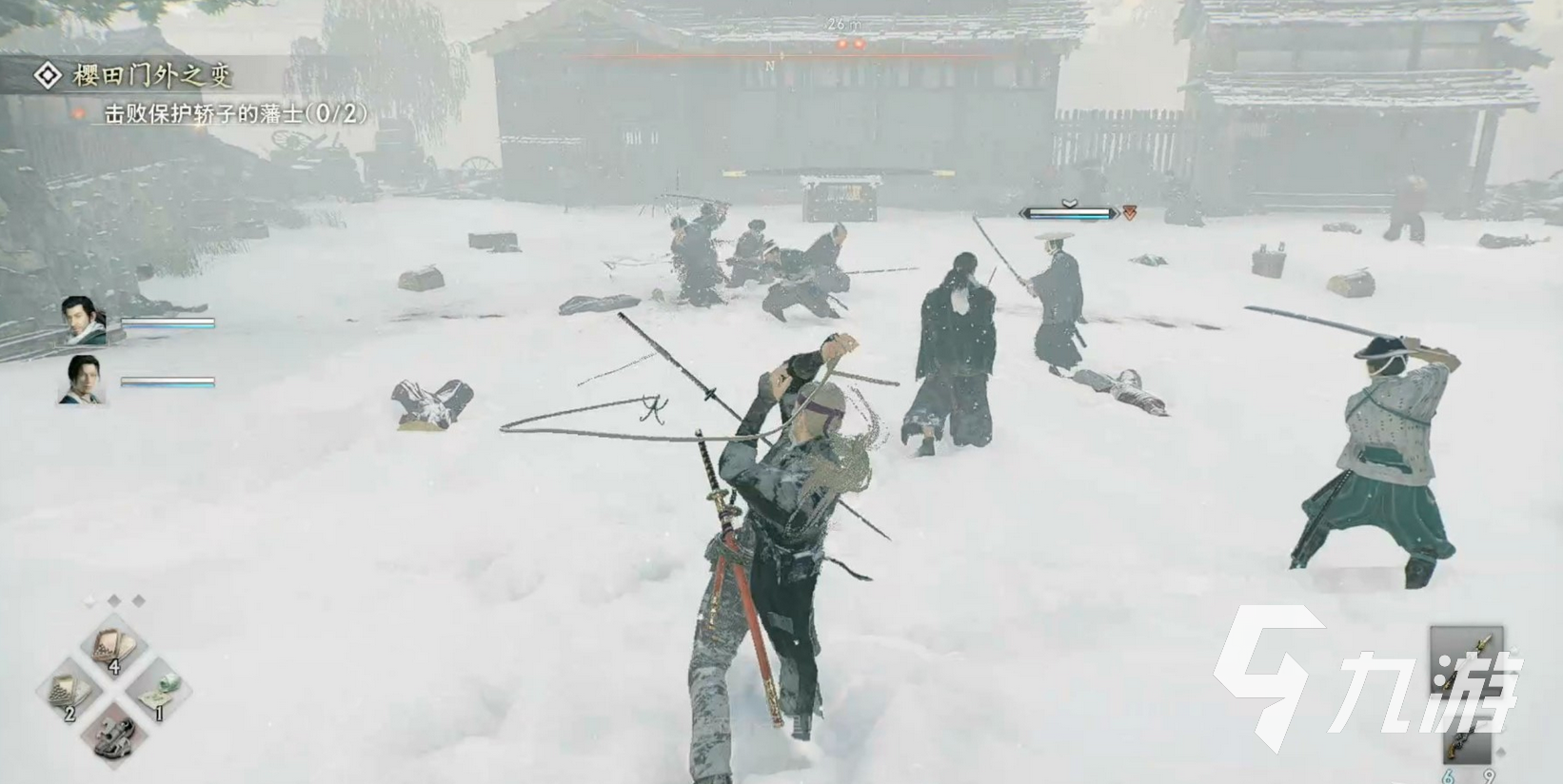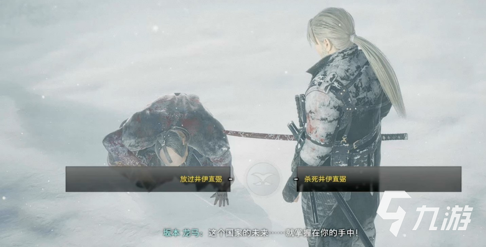 在游戲的主線劇情進(jìn)行到櫻田門外之變的時候,加入前方的混戰(zhàn)將兩個戴帽子的武士擊敗后就會進(jìn)入到劇情中。這時井伊就會從轎子中出來和我方進(jìn)行戰(zhàn)斗。戰(zhàn)斗過程中是比較輕松的,因?yàn)榫吝B招都有很明顯前搖動作,而且沒有連招,只需要利用彈反就可以輕松將其擊敗。在第1次擊敗井伊后,青鬼會出來幫忙,需要將這兩個敵人同時擊敗才可以。井伊和青鬼的招式也完全沒有變化,按照之前的套路帶來一遍就可以輕松戰(zhàn)勝,在勝利之后就會面臨選擇的問題。