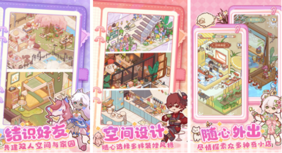 足不出戶,享受別致的溫馨生活,自由設(shè)計(jì)空間以及浪漫莊園,選擇不同的裝修風(fēng)格,也可盡情外出,將探索神奇小店,還能自由選擇服裝,任意裝扮并自由搭配,隨心所欲的完成空間設(shè)計(jì),?Diy個(gè)人的溫馨小窩,與喜歡的朋友共同建造圣人小屋,還能與志同道合的好友建造家園,