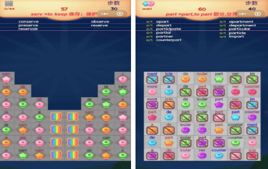 在游戲中,玩家將成為一個(gè)探險(xiǎn)家,在海底遺跡還有太空艙去完成單詞猜測(cè)。字母的矩陣是隨機(jī)生成的,你需要做的就是拼出目標(biāo)單詞,然后順利的通關(guān)。你可以根據(jù)個(gè)人的水平去調(diào)整難度,還可以生成專屬的詞匯圖譜,會(huì)記住你學(xué)習(xí)了多少小朋友在玩游戲時(shí)在不知不覺中就能夠提升詞匯量。游戲中還有60秒限時(shí)挑戰(zhàn),如果你覺得自己的能力出色,那么就趕緊來挑戰(zhàn)一下吧。
