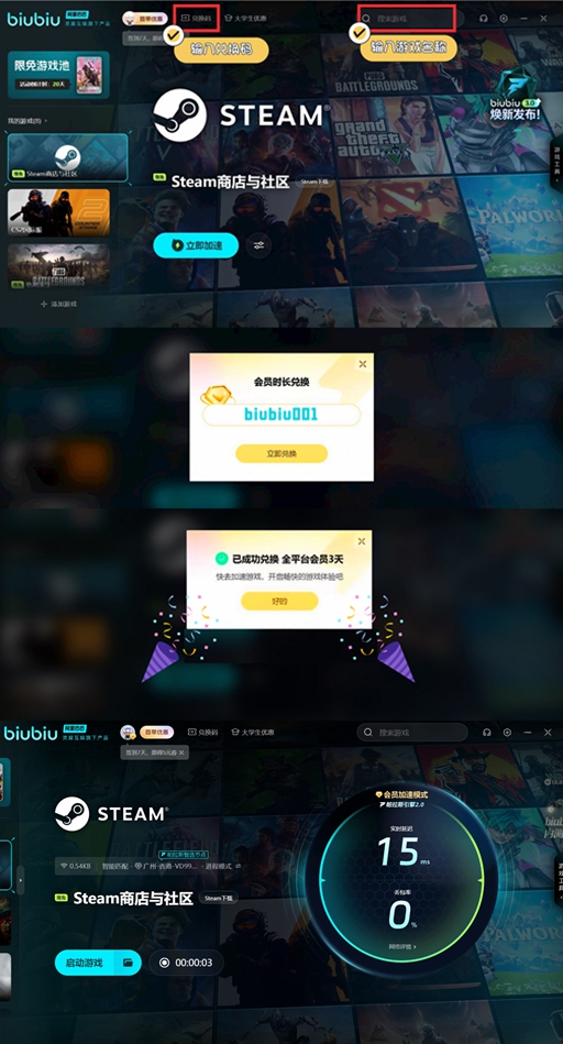 精彩的游戲自然會(huì)有很多的玩家下載,但如果在老舊的小區(qū)網(wǎng)絡(luò)速度比較慢,下載速度也會(huì)受到影響,此時(shí)可以用網(wǎng)絡(luò)加速器。還能夠享受免費(fèi)加速時(shí)長,新用戶在第1次注冊(cè)之后有個(gè)3小時(shí)的免費(fèi)加速時(shí)長。另外還可以在頁面輸入口令兌換碼【biubiu001】在兌換口令之后,就有一個(gè)長達(dá)72小時(shí)的時(shí)長。將這兩者放在一起疊加之后,免費(fèi)的加速時(shí)長可以達(dá)到75小時(shí)。