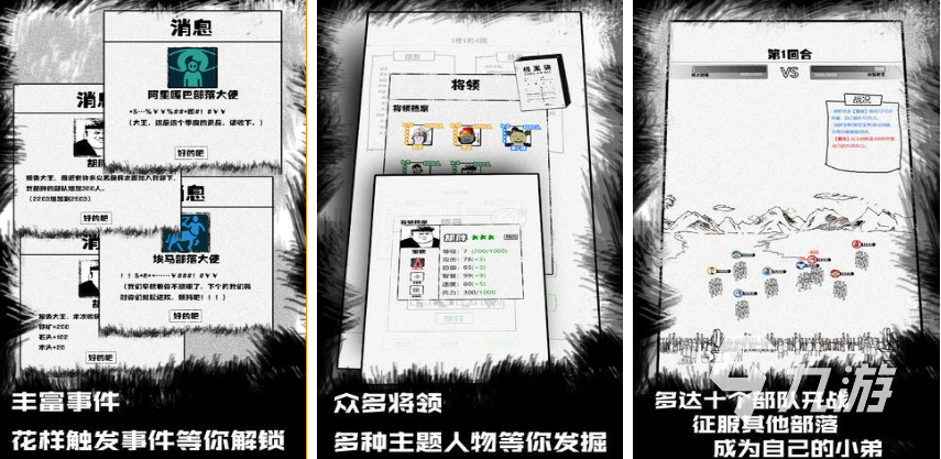 《紙上部落》這款內(nèi)含大量文字內(nèi)容的手游可以讓玩家體驗(yàn)到一次新穎有趣的游玩過程。簡約但不簡單的線條畫風(fēng),豐富有趣的各類游戲事件,更有花樣眾多的觸發(fā)條件。你還能收集到眾多強(qiáng)大卻有些許搞笑的將軍為你為戰(zhàn),去參加十個(gè)不同的部落亂戰(zhàn)。去用你的操作征服別的部落,收攏他們?yōu)槟愣鴳?zhàn)吧!