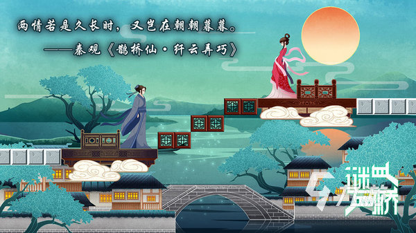 在古老的故事中,牛郎織女被銀河分隔,只有通過(guò)鵲橋才能相聚。而在這款游戲中,你將成為搭建鵲橋的使者。運(yùn)用你的智慧和技巧擺放方塊,搭建出一座連接牛郎織女的橋梁。游戲唯美的畫面和古典的音樂(lè),讓你好像在于一個(gè)浪漫的神話世界。每一回的挑戰(zhàn)都是對(duì)耐心和創(chuàng)造力的考驗(yàn),讓你在游戲中感受中國(guó)傳統(tǒng)文化的力量。