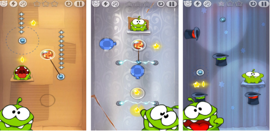 曾經(jīng)在剛剛上線之后,就已經(jīng)贏得了將近10億玩家的高度認(rèn)可,精心設(shè)計(jì)了420多個(gè)不同的挑戰(zhàn)關(guān)卡,在每個(gè)關(guān)卡中呈現(xiàn)出來的陷阱以及障礙物是完全不同的,主要講述的就是其中的小怪物想要吃到被繩子牽住的糖果,由于會(huì)被很多障礙物所困惑,因此想如愿以償并不是特別容易的,玩家必須要合理規(guī)劃,一定要及時(shí)躲避各種障礙物,讓糖果成功進(jìn)入到小怪物的嘴中。