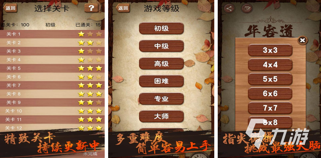 《華容道積木拼圖》源于三國演義中的華容道,主要玩法就是用最少的步數(shù)將棋盤中央的棋子移到出口。游戲有很多規(guī)則,比如棋子只能與相鄰的棋子互換,且互換時還不能跨越其他棋子,玩的時候比較燒腦,也很容易吸引大家的注意力。游戲一共有6個難度,從初級到大師全都有,不同的等級,棋盤數(shù)量也不同哦。如果實在通不了關(guān)的話,還可以選擇求助。