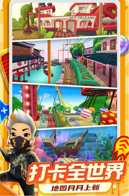 曾經(jīng)在多年之前,游戲上線后就有超高的影響力,雖然剛開始只支持單人模式,現(xiàn)在進行了全面的升級之后,融入了3v3的模式,你可和孩子在地鐵軌道中來回穿梭,但在地鐵的軌道里會突然間出現(xiàn)各種障礙物,比如通過左滑右滑或向上滑動的方式,及時躲避各種障礙物,沿途有運動鞋滑板鞋等你收集。