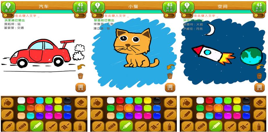 畫畫可鍛煉孩子們的創(chuàng)意和想象力,邀請孩子們共同體驗時,根據(jù)隨機給出的題目完成作畫,培養(yǎng)了彼此間的默契度。在空白的畫板上,兩位玩家各選一種陣營,一種根據(jù)系統(tǒng)給出的題目隨意作畫,而另一種卻根據(jù)對方的畫作猜出正確的答案,在90秒規(guī)定的時間之內(nèi),回答的越多獲得的分數(shù)越高。