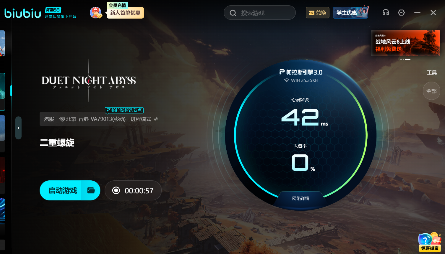 二重螺旋龐大的文件體積對網(wǎng)絡(luò)穩(wěn)定性提出了高要求,若玩家身處網(wǎng)絡(luò)波動頻繁的環(huán)境,或與游戲服務(wù)器地理位置遙遠,下載速度勢必受限。尤其在網(wǎng)絡(luò)高峰時段,服務(wù)器擁塞更會導(dǎo)致下載速度驟降。此時,選擇biubiu加速器開啟獨立加速通道,成為規(guī)避下載不穩(wěn)定狀況的有效解決方案,能智能優(yōu)化傳輸路線,提供穩(wěn)定保障。